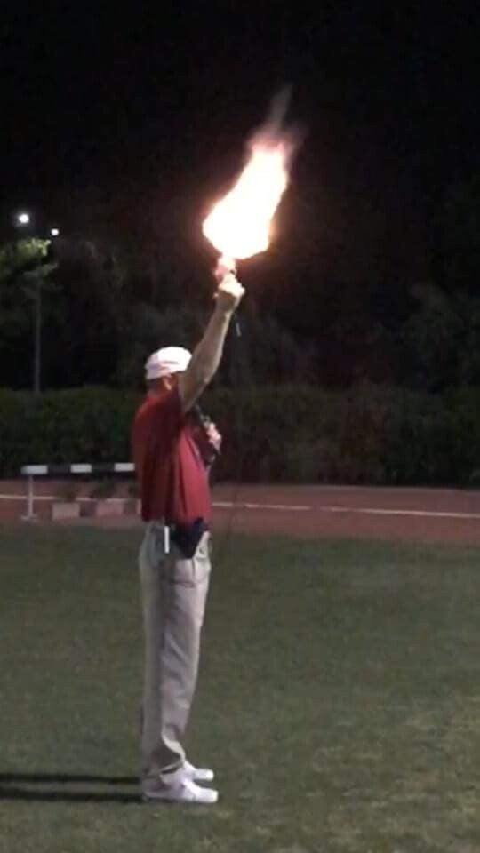 Moore was too sick to start the meet, so Buettner took over and Moore served as the recall starter -- laying on his side on the field and taking breaks to get sick in the bathroom.